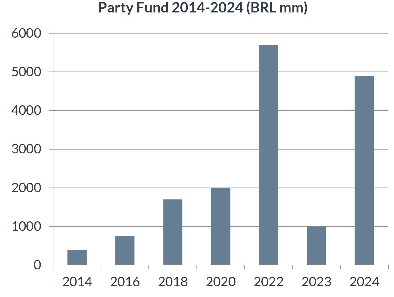 Additionally, party funding is entirely state-financed. The cost of elections has been reduced by 30% (approximately BRL 5 billion). Private financing is deemed electoral abuse, thus diminishing the influence of private donors (positive institutional driver).