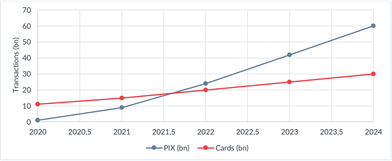 Graph 2: Brazil – Number of Transactions (Billions) PIX vs Cards